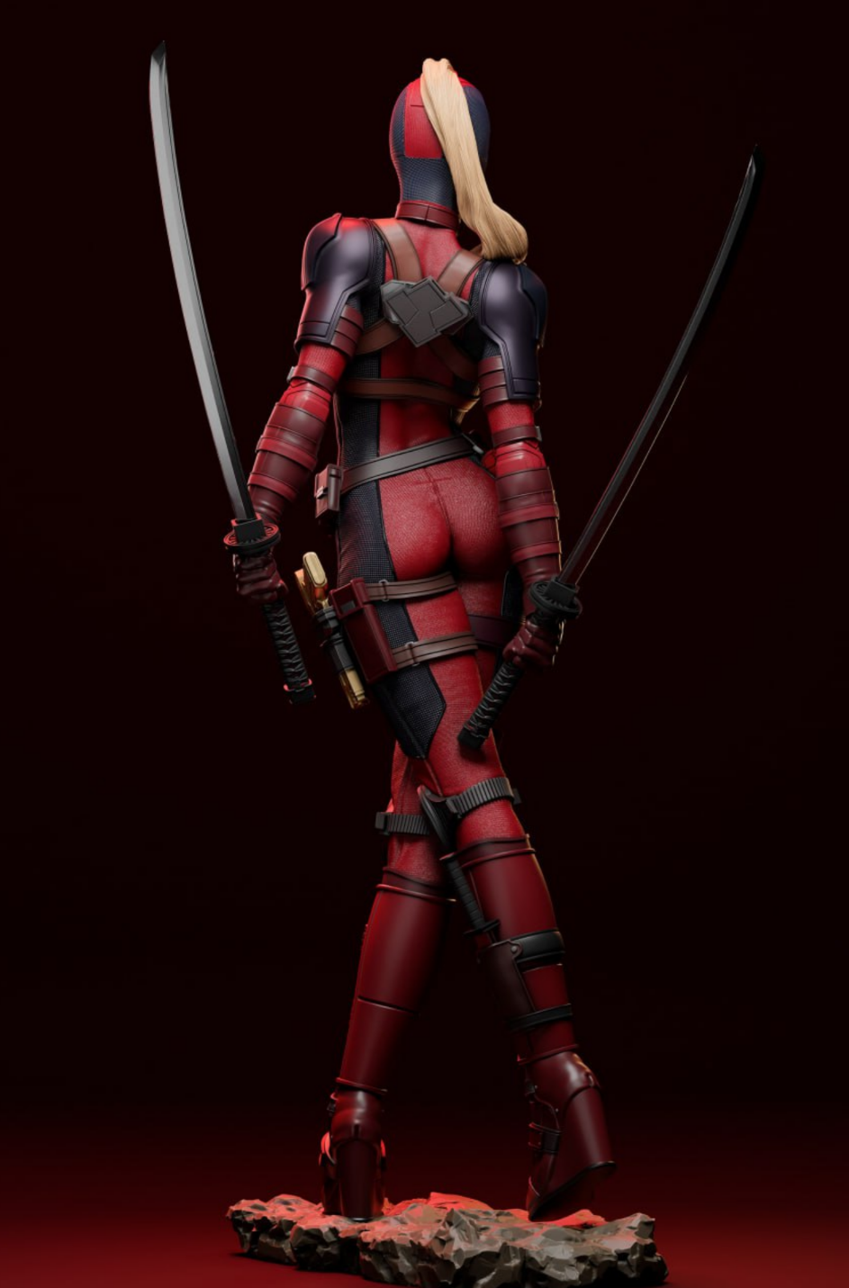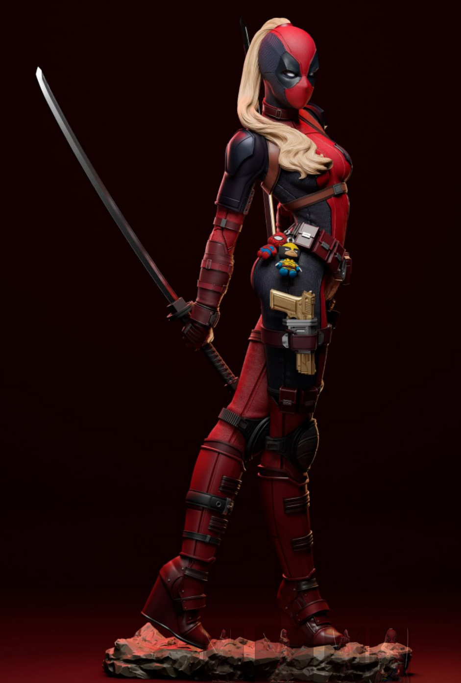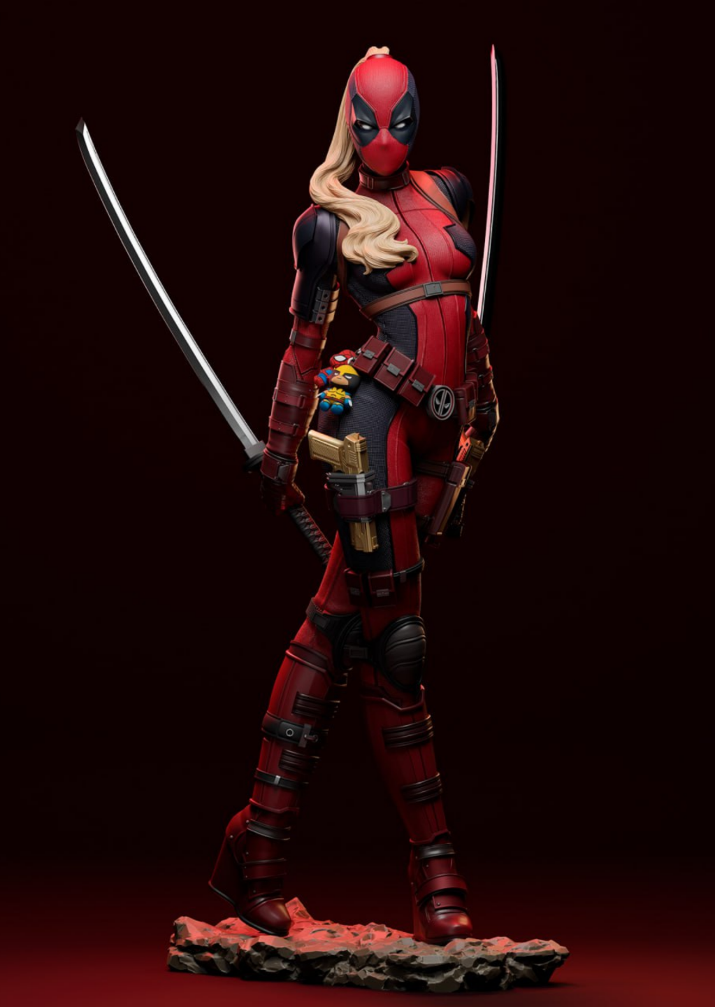 La figura está hecha de resina de alta calidad y PLa y está pintada a mano y aerografo para capturar cada detalle de Lady Deadpool. Es una reproducción exacta de la apariencia del personaje en la pelicula y es una pieza de colección imprescindible.